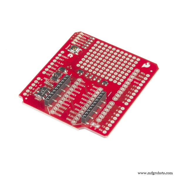 Ik heb Xbee Shield gebruikt om de Xbee met Arduino te verbinden. Zorg ervoor dat de instellingen in het schild zijn ingesteld op Xbee. Dit schild kan samen met Arduino ook worden gebruikt om de firmware-instellingen te schrijven wanneer we de schakelaar op usb zetten. Het gebruikt de ingebouwde FTDI-chip van Arduino om de gegevens naar Xbee te schrijven.